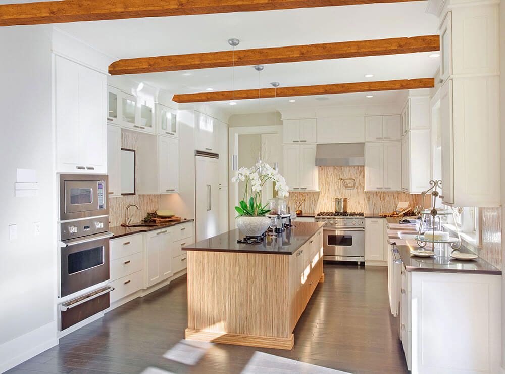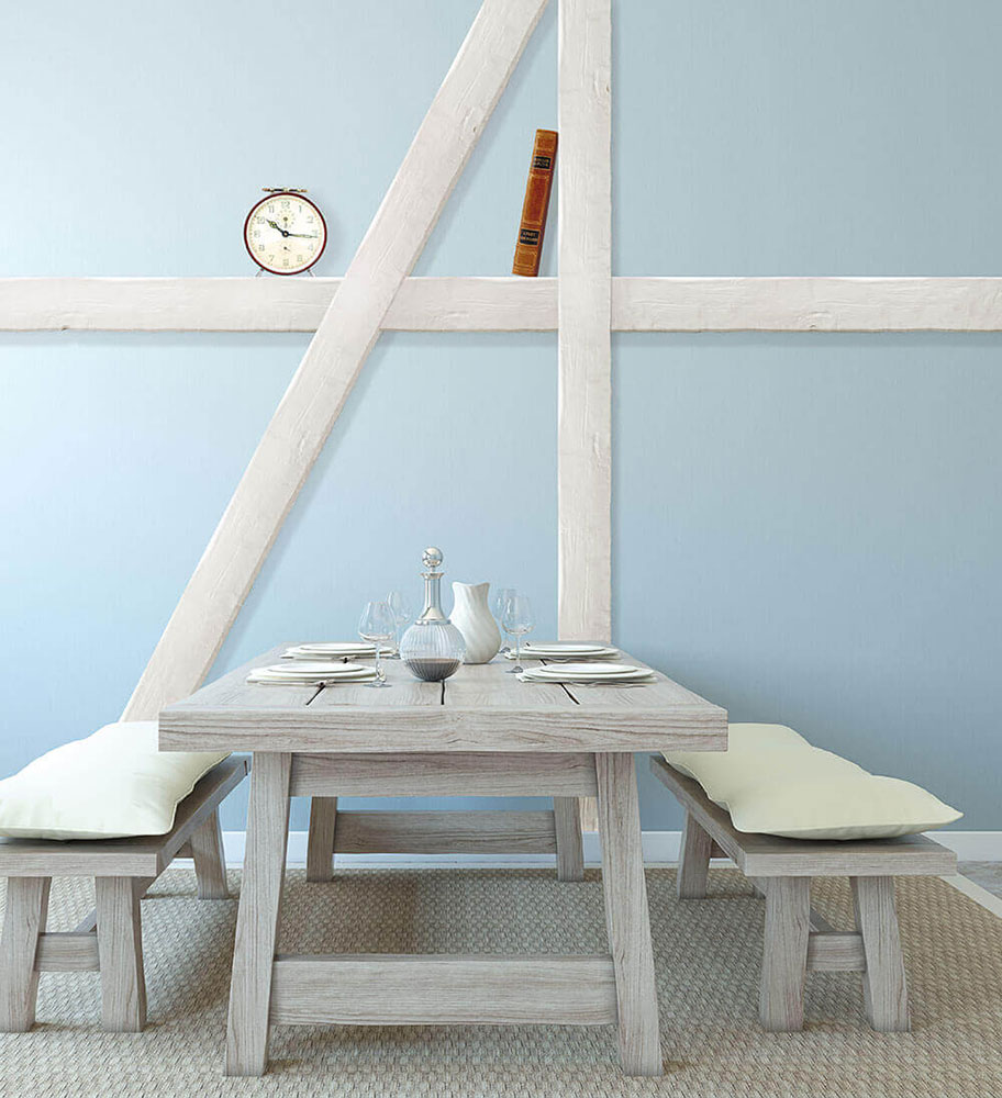 5. Tijdloze elegantie: In klassieke of traditionele interieurs voegen houten balken een tijdloze en verfijnde look toe. Ze werken goed met gedetailleerde kroonlijsten, sierlijke meubels en luxe stoffen.